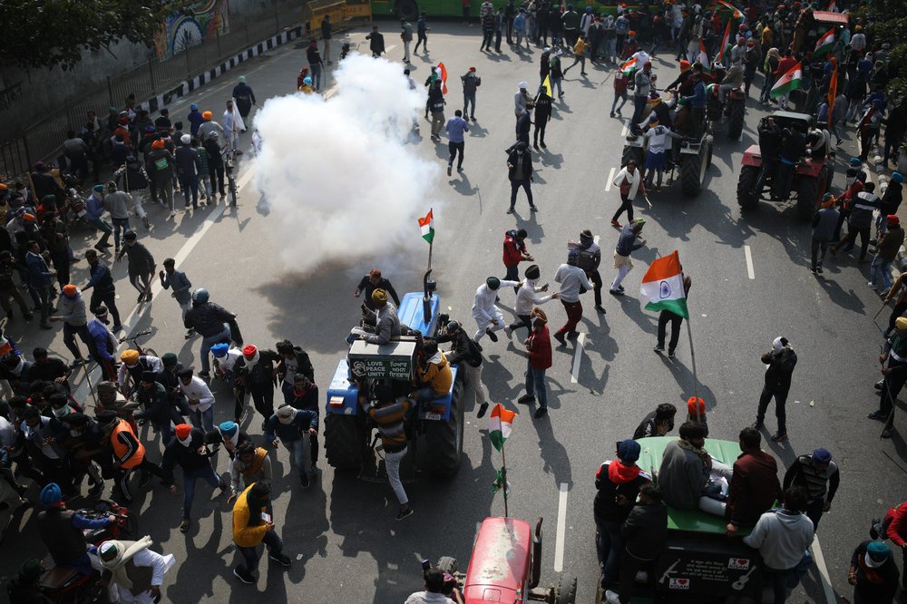 Vào ngày 26/1, khi cả nước Ấn Độ kỷ niệm Ngày Cộng hòa, hàng chục nghìn nông dân đã lái máy kéo xông qua hàng rào cảnh sát và hơi cay. Ảnh: AP.