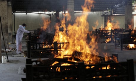Funeral pyres for Covid-19 victims burning at a mass cremation site set up in New Delhi. Photograph: Altaf Qadri/APHannah Ellis-Petersen, as told to Sophie Zeldin-O’NeillMon 3 May 2021 07.00 BST
